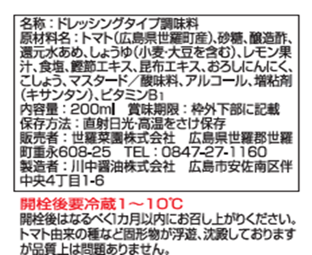 たっぷりトマトのノンオイルドレッシング200ml